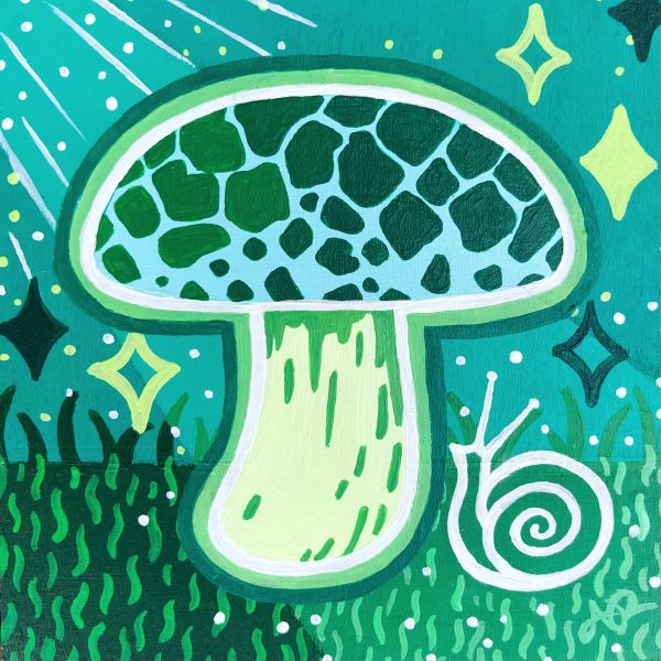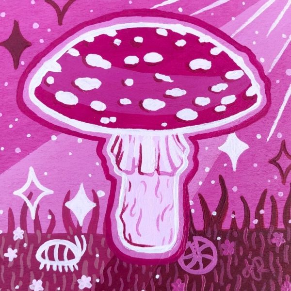 Art, Past Events Game of Shrooms, 2024 6 original 4″x4″ artworks painted to hide & gift during Game of Shrooms
